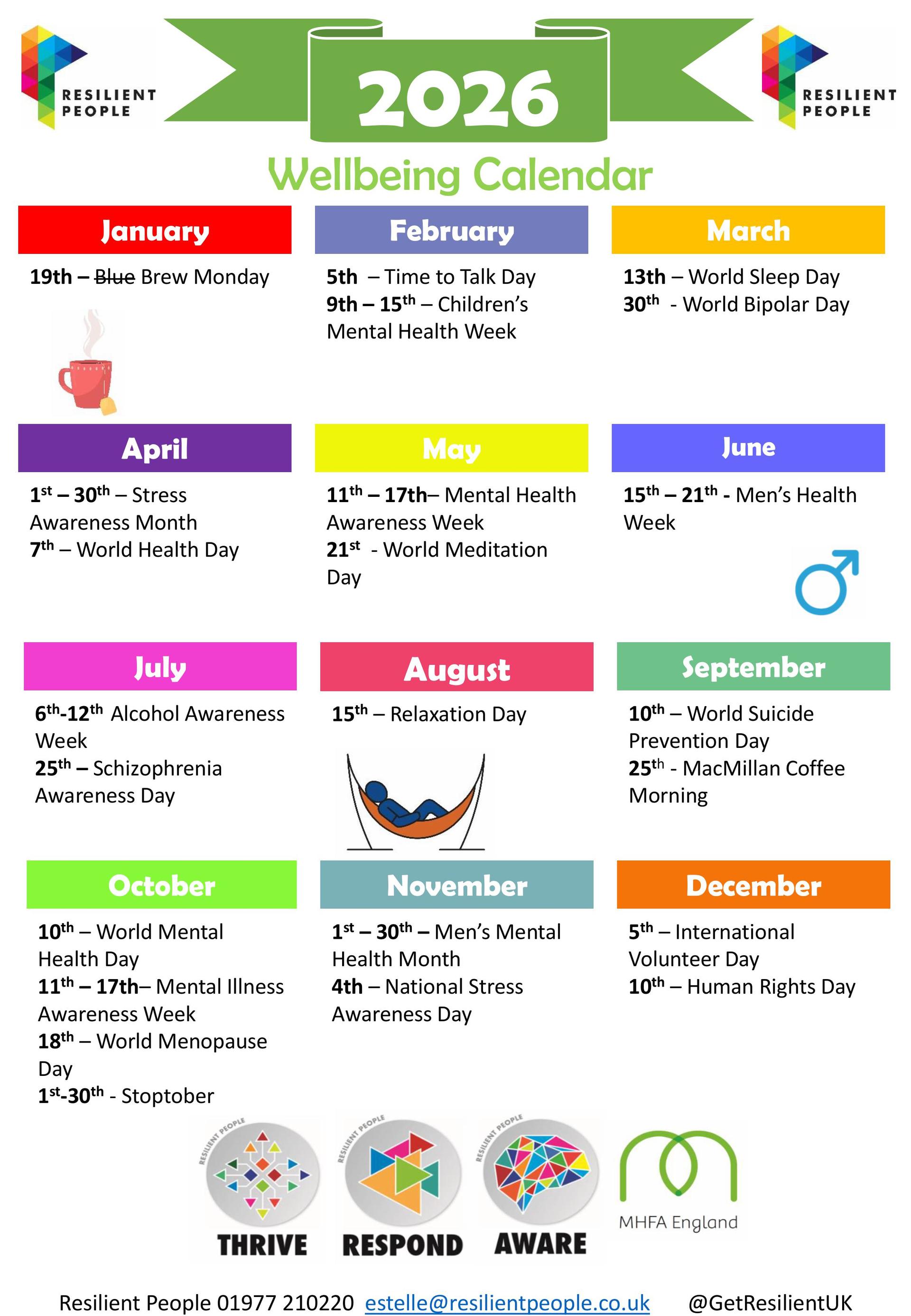 A simple calendar won’t solve everything, but it can help keep wellbeing on the agenda and support a more open, psychologically safe culture where people feel able to speak up and seek support when they need it.