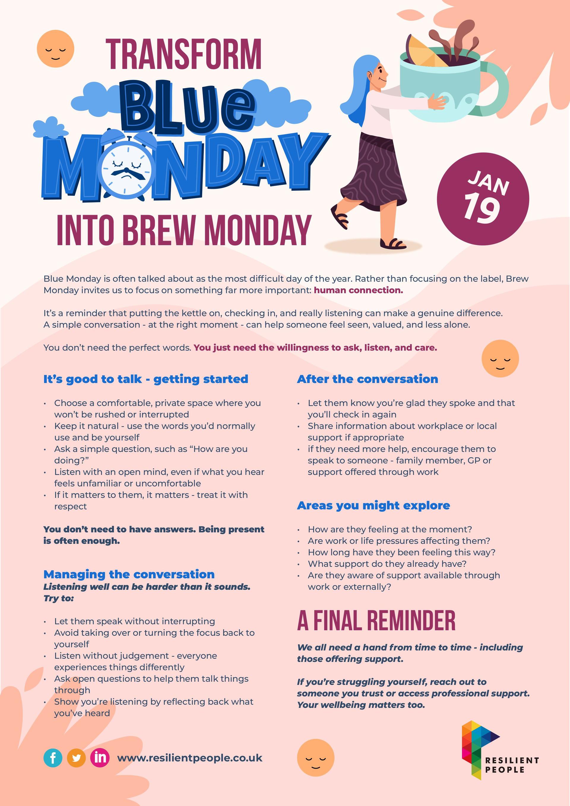 And while Brew Monday is a helpful prompt, these conversations don’t need to be limited to one day. There’s always time for a cuppa and a catch-up.